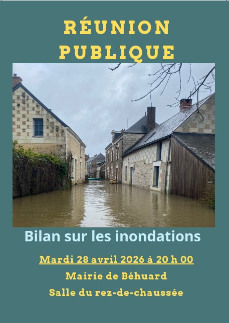 Réunion publique le mardi 28 avril 2026 à 20 h 00 à la mairie de Béhuard - Bilan sur les inondations